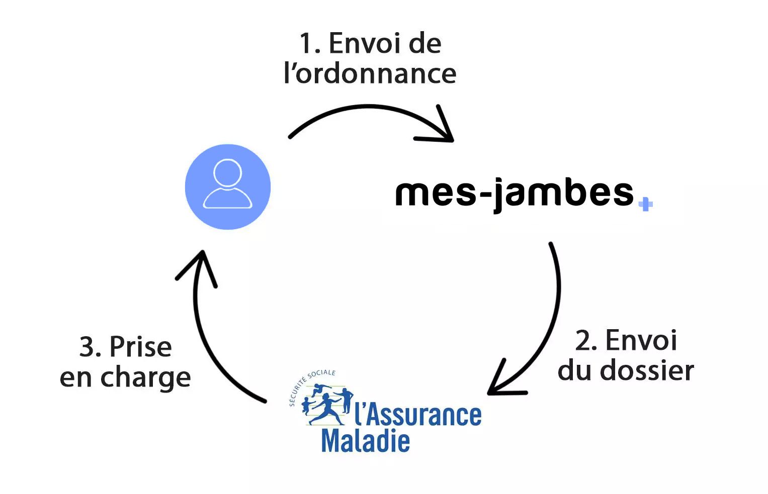 1. J'envoie mon ordonnance, n° sécu & date de naissance à Mes-Jambes (scan, email ou courrier)